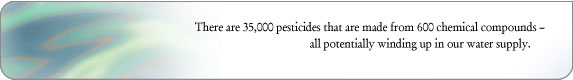 • Every year at least 255 million metric tons of hazardous chemical wastes are dumped into our nation’s environment? • There are 400,000 landfills, ponds, pits and lagoons in the U.S. containing some of the most dangerous substances known? • There are 35,000 pesticides that are made from 600 chemical compounds – all potentially winding up in our water supply?